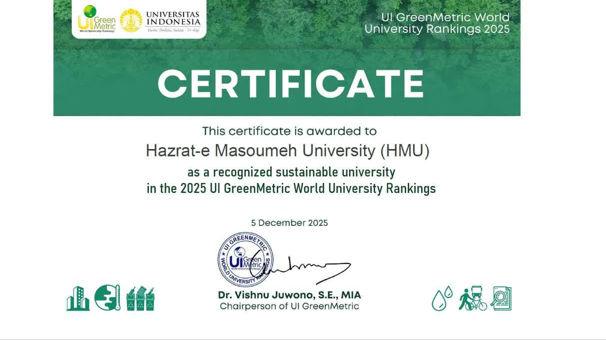 دانشگاه حضرت معصومه (س) برای نخستین بار موفق شد در میان برترین دانشگاههای جهان در رتبهبندی جهانی دانشگاههای سبز (UI GreenMetric World University Ra...